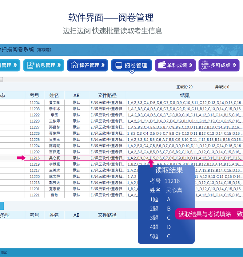 熱搜關(guān)鍵詞:光標(biāo)閱讀機、網(wǎng)上閱卷系統(tǒng)、答題卡及考試考核軟件